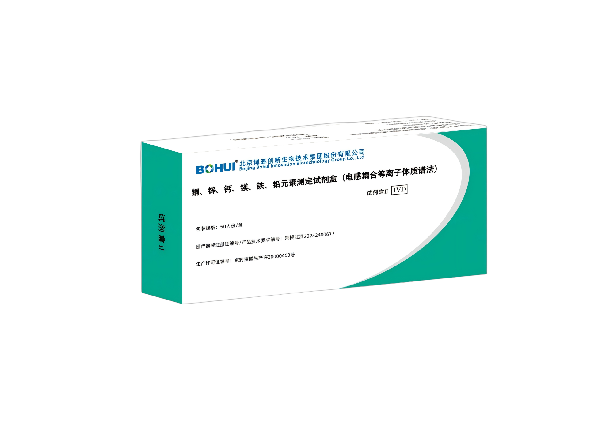 本產(chǎn)品采用電感耦合等離子體質譜法(ICP-MS),利用高頻射頻信號形成高溫等離子體將待測物電離,并通過質譜分析器檢測離子的質量和強度,從而測定樣本中的元素含量。對人體全血樣本中的六項元素(銅、鋅、鈣、鎂、鐵、鉛)進行定量檢測。